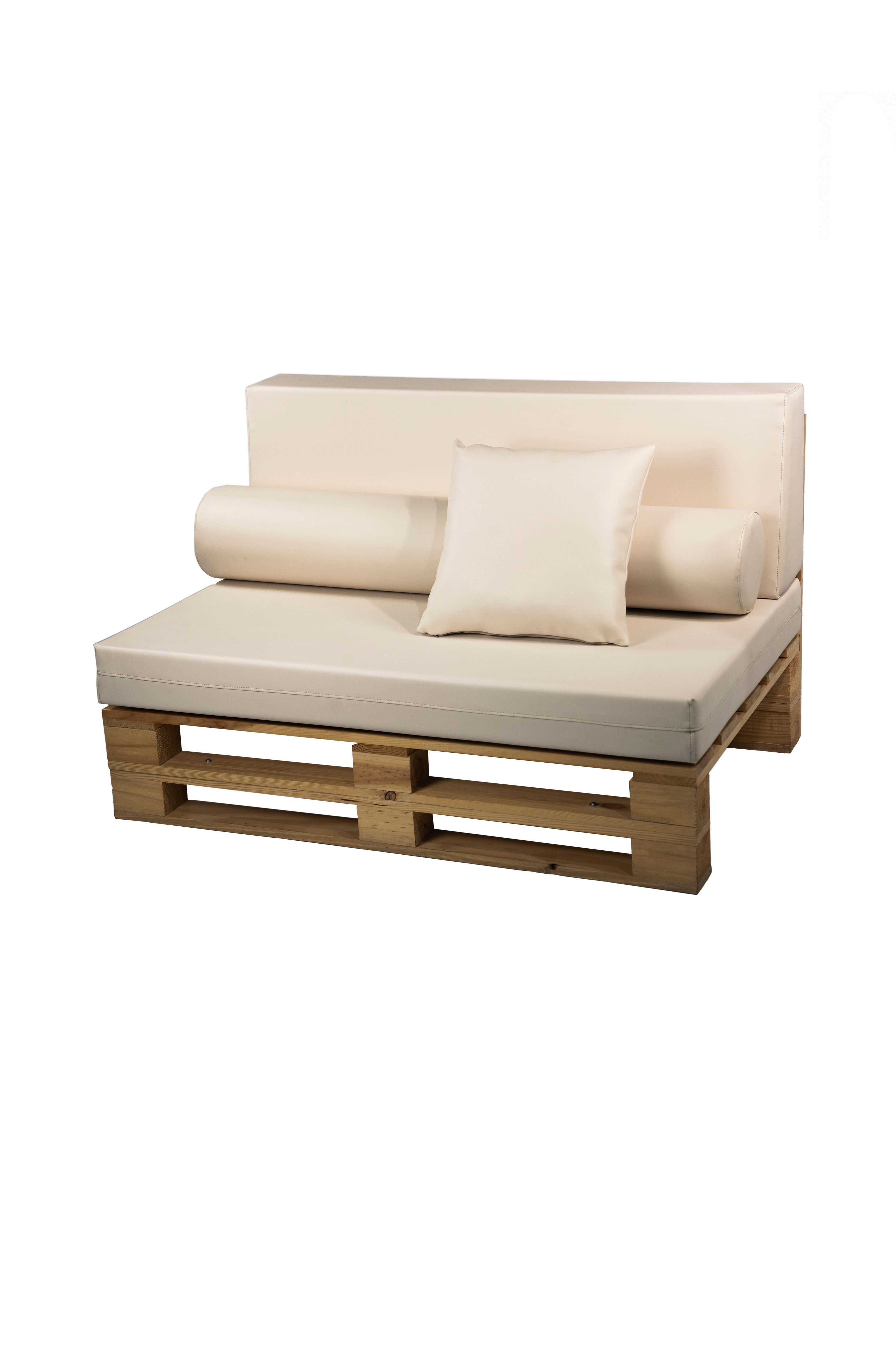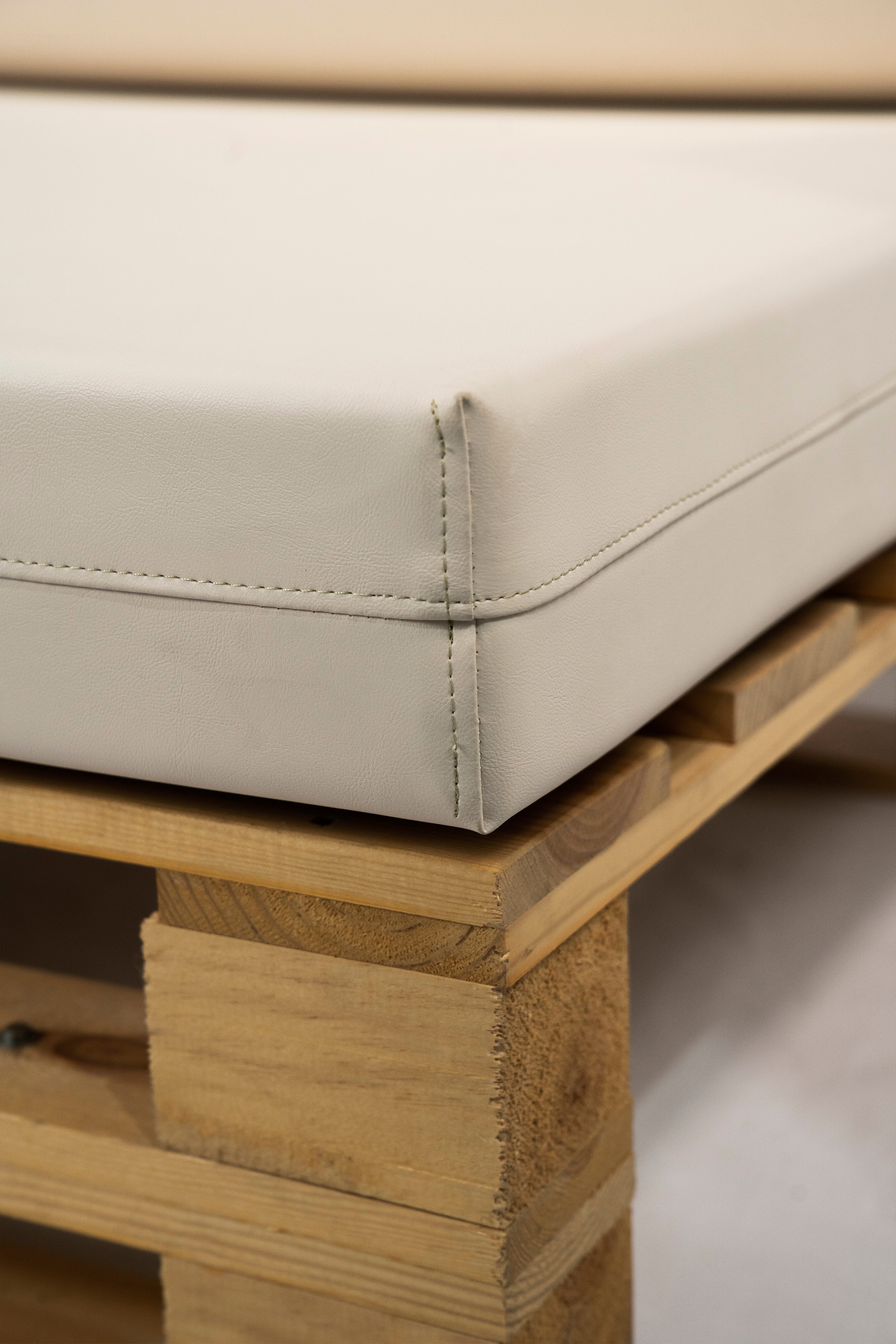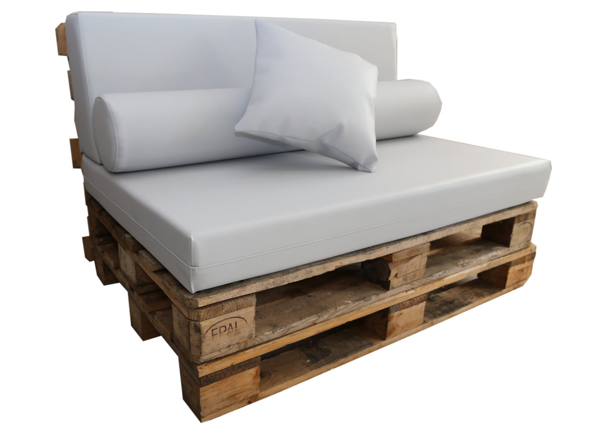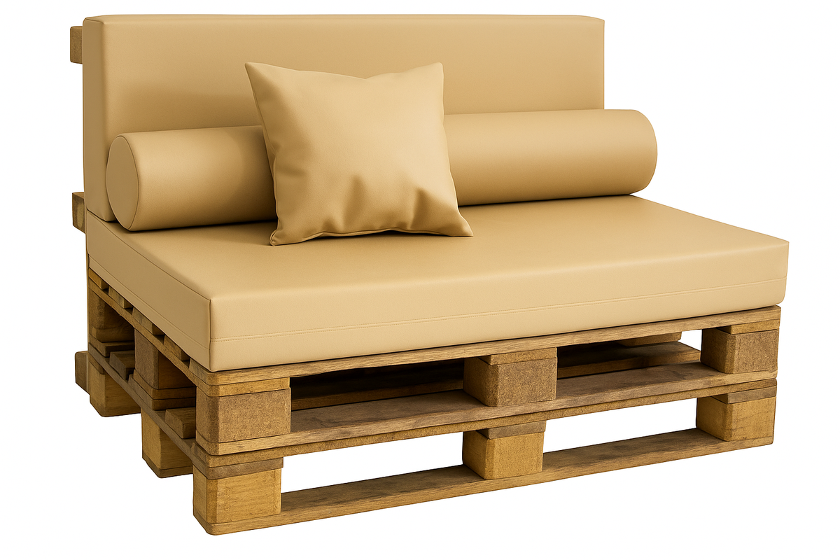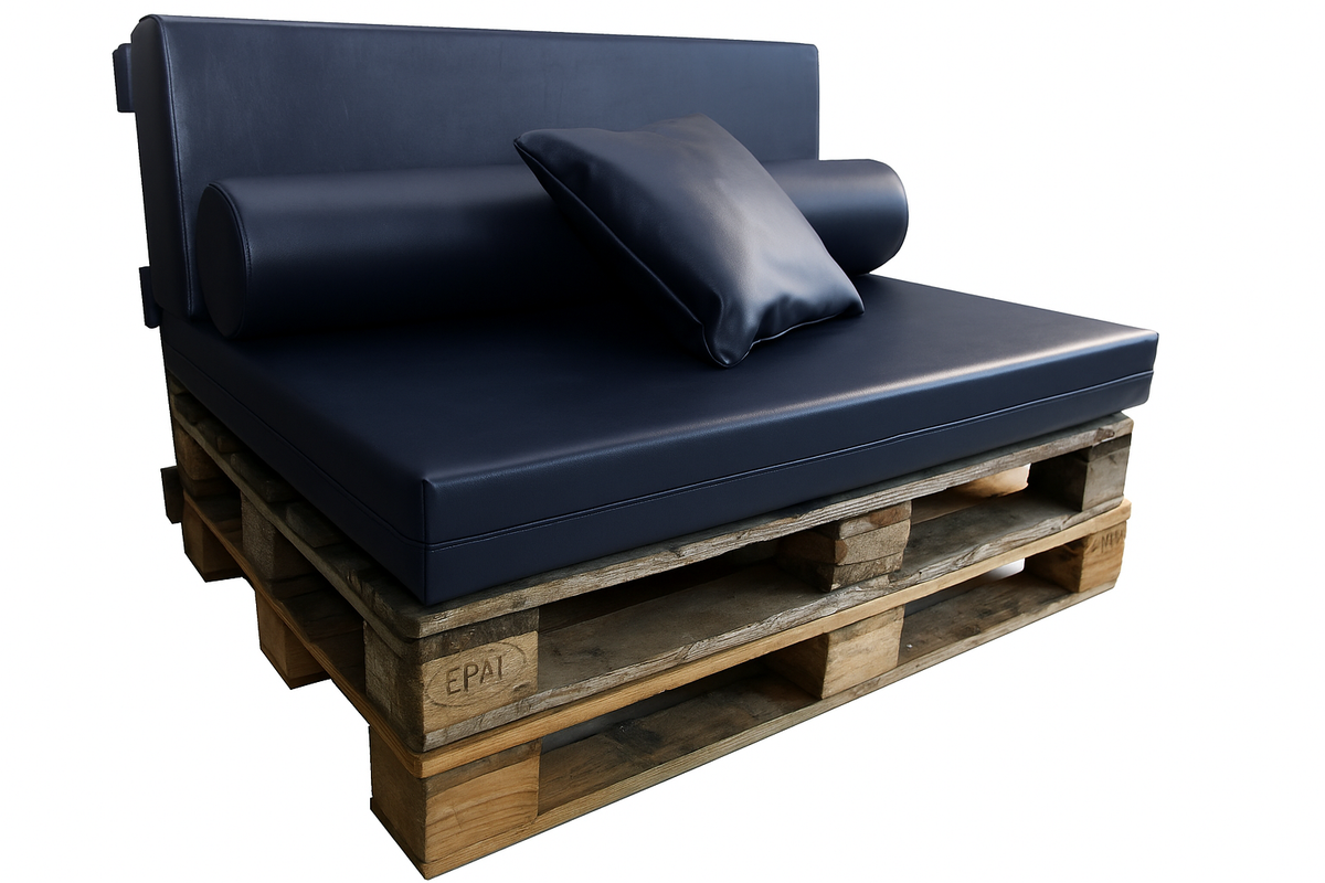 Recomendamos añadir una espuma técnica protectora de 110 x 70 x 1 cm entre el palet y el asiento. Este complemento ayuda a evitar deslizamientos y roces, prolongando la vida útil del tejido y mejorando la estabilidad.