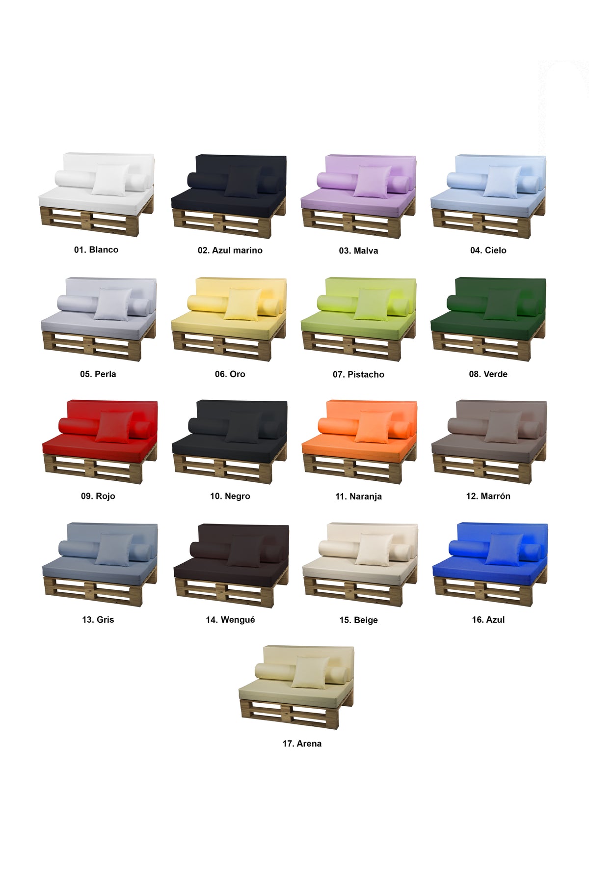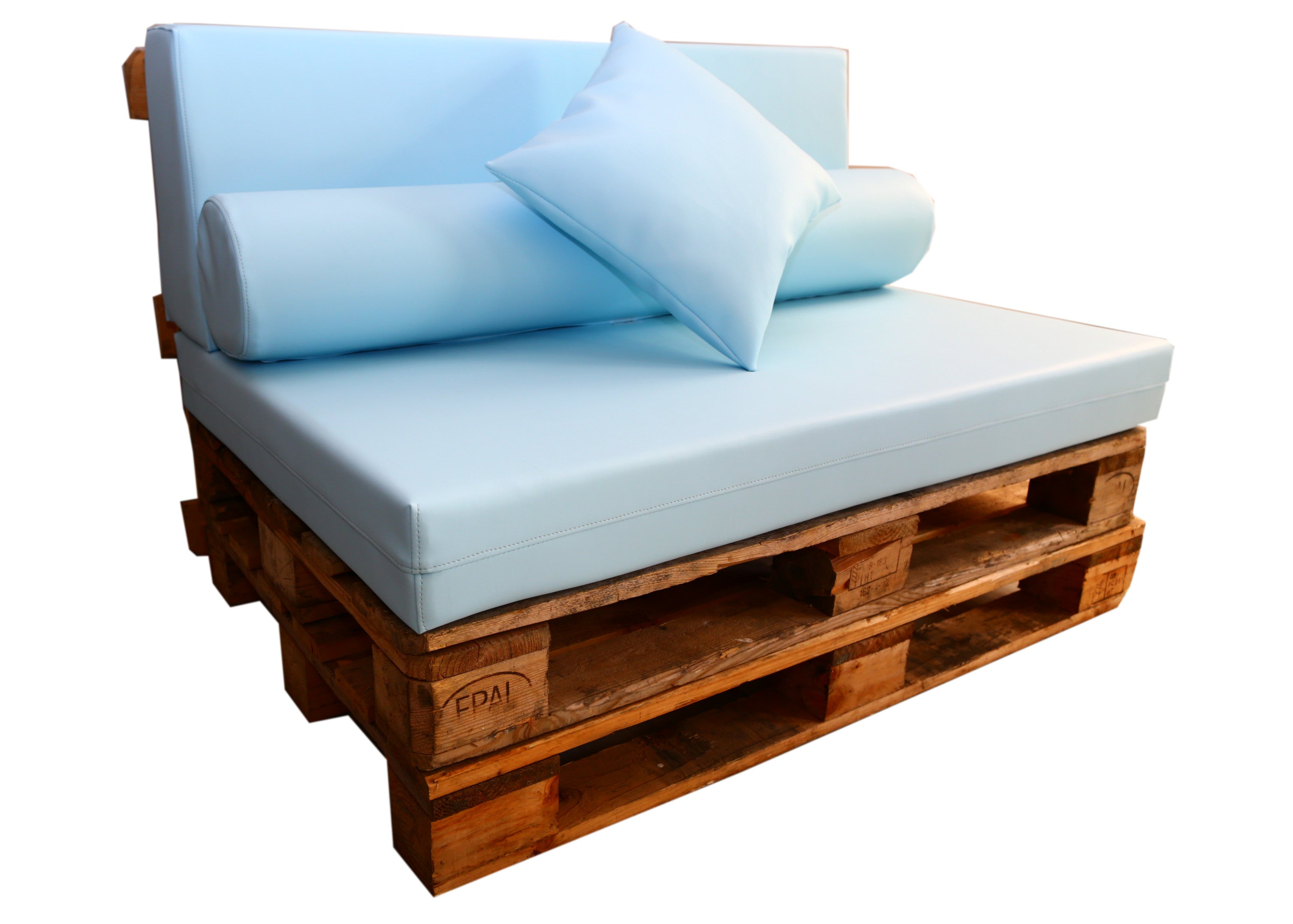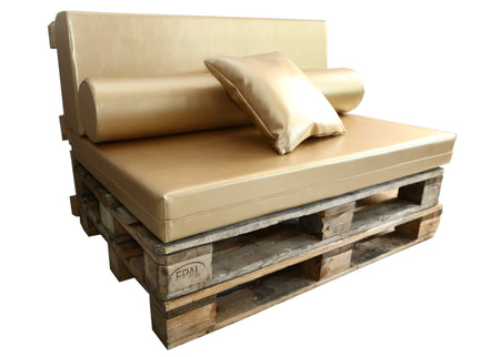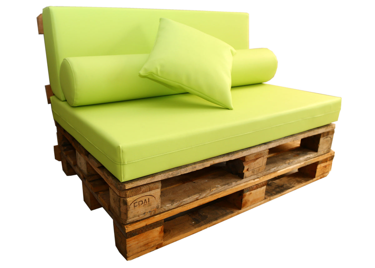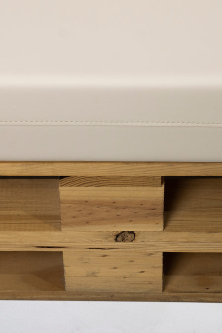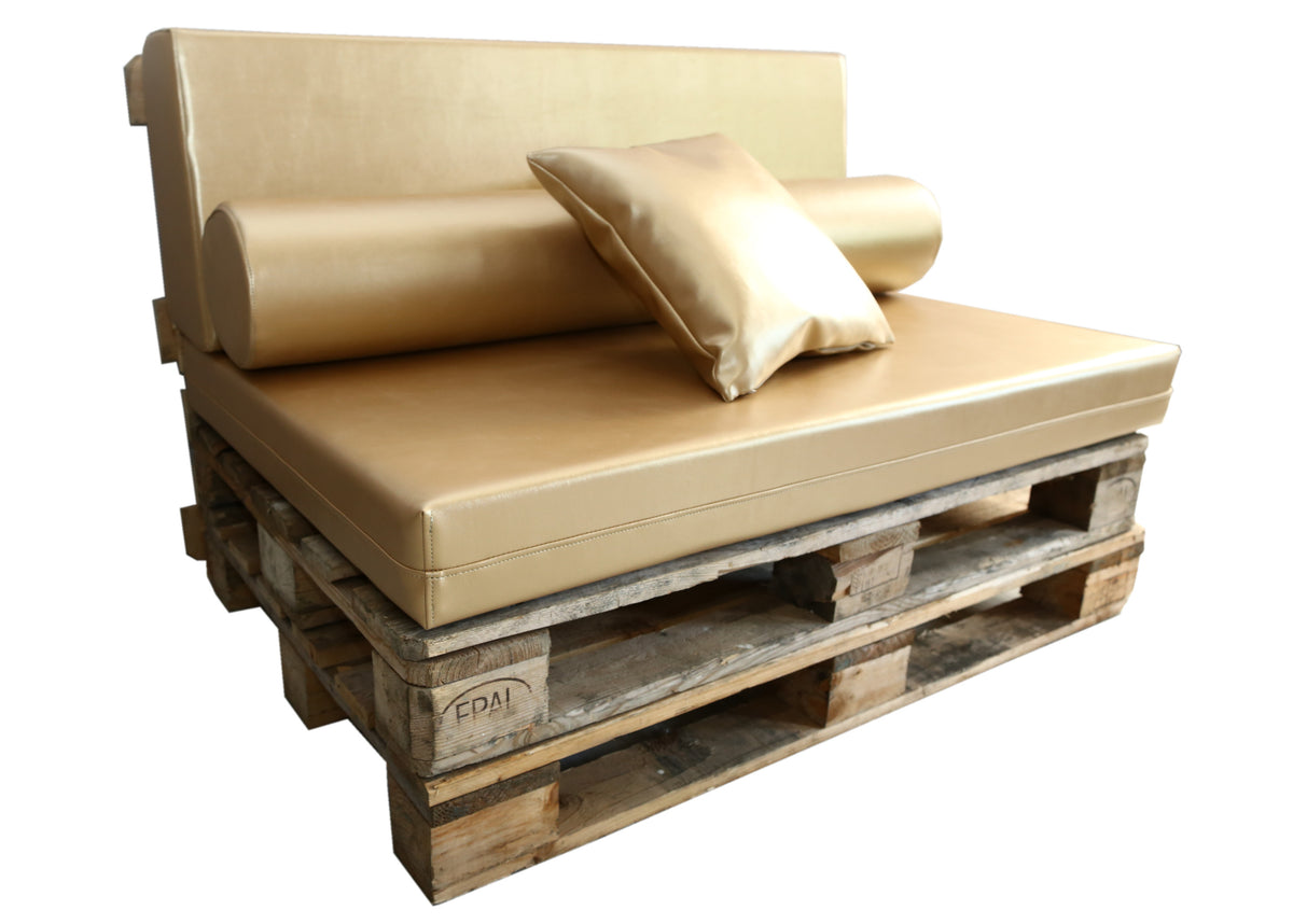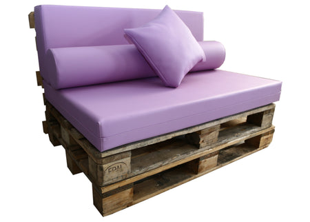 Recomendamos añadir una espuma técnica protectora de 110 x 70 x 1 cm entre el palet y el asiento. Este complemento ayuda a evitar deslizamientos y roces, prolongando la vida útil del tejido y mejorando la estabilidad.