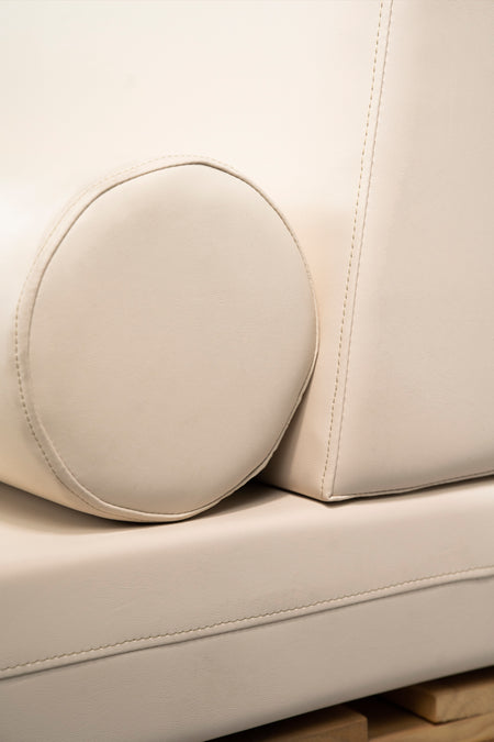 Gracias a su tapizado en polipiel náutica impermeable, este sofá resiste la humedad, el sol y el uso diario sin perder confort ni estética. Puedes personalizarlo combinando los distintos elementos y colores: asiento, respaldo, rulo y cojines.